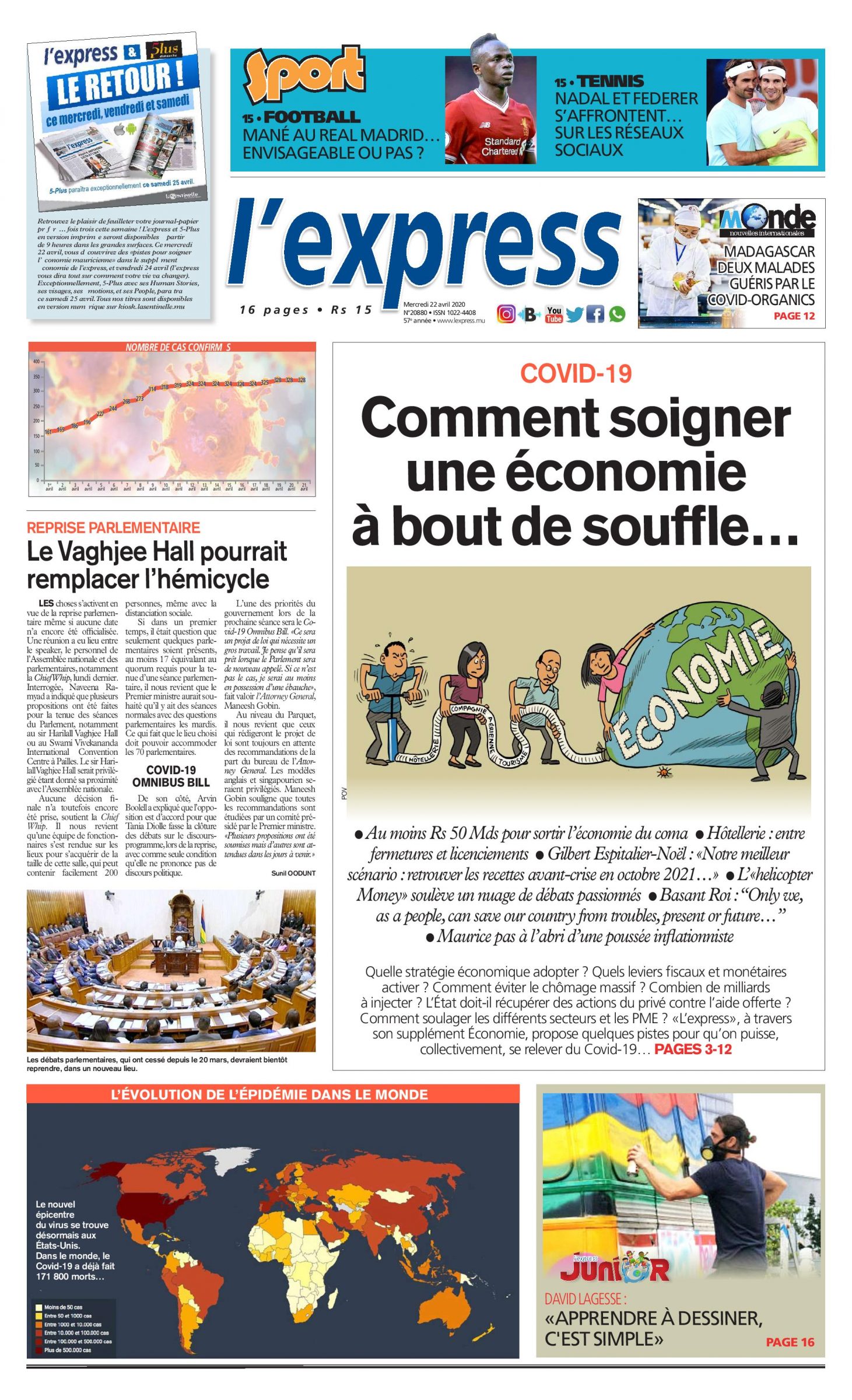 COVID-19 Comment soigner une économie à bout de souffle… Le Vaghjee Hall pourrait remplacer l’hémicycle. Voici les articles qui font la Une de ce mercredi.
