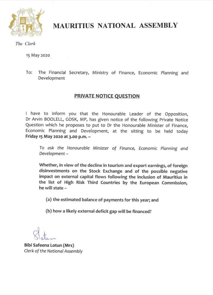 Le leader de l’opposition met ces interrogations dans le contexte du déclin du tourisme, de la chute des exportations, du désinvestissement étranger en Bourse et de l’impact négatif de l’inclusion de Maurice sur la liste des juridictions financières à hauts risques de la Commission européenne. Sujet d’ailleurs de sa PNQ de mercredi.