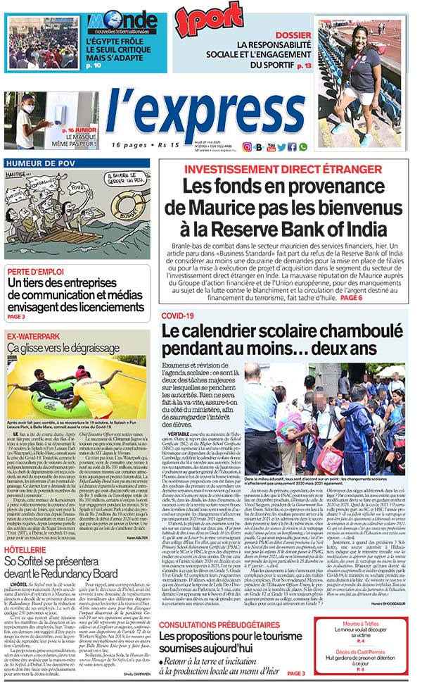 En une de l'express: Covid-19: Le calendrier scolaire chamboulé pendant au moins… deux ans ; autre titre : ex-Waterpark : Ça glisse vers le dégraissage.