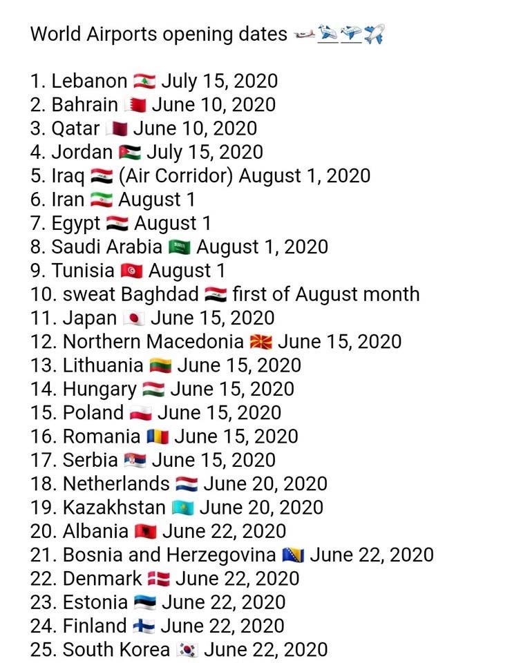 L'Organisation internationale de l'aviation civile (OIAC) vient de publier les dates de la réouverture des principaux aéroports du monde. La plupart d'entre eux opéreront à partir du mois de juillet. Mais dès juin, plusieurs activités reprennent déjà.