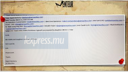 Ce courriel nous permet de savoir par quel vol finalement la Première dame est rentrée à Maurice, l’EK701/18, donc le vol Emirates EK701 le 18 mars qui atterrit à 8 h 45. À 16 heures près, Kobita Jugnauth et ses filles auraient dû être placées en quarantaine et si elles avaient maintenu leur billet retour pour le 22 mars, elles n’auraient tout simplement pas pu rentrer… Car coïncidence, c’est le 18 mars dans la soirée que les trois premiers cas de Covid-19 à Maurice sont dépistés. Et le lendemain, a été annoncée la fermeture immédiate des frontières… Si elles avaient attendu le 22 mars, comme c’était initialement prévu, aurait-on vu Kobita Jugnauth et sa petite famille peut-être stranded in UK, brandissant leurs pancartes : Let us back home ?