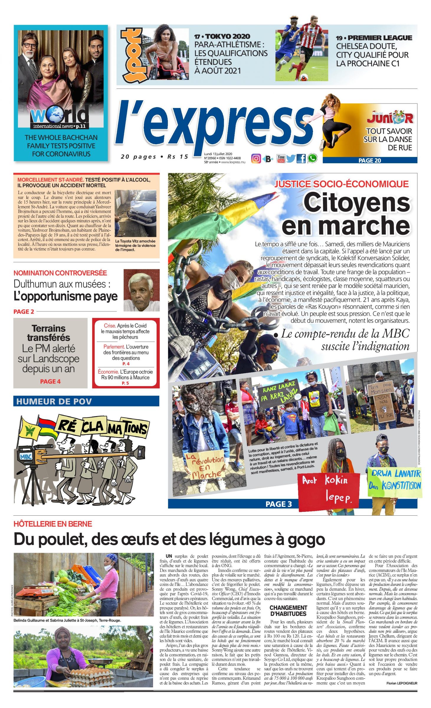 Les grands titres de l'express de ce lundi 13 juillet 2020