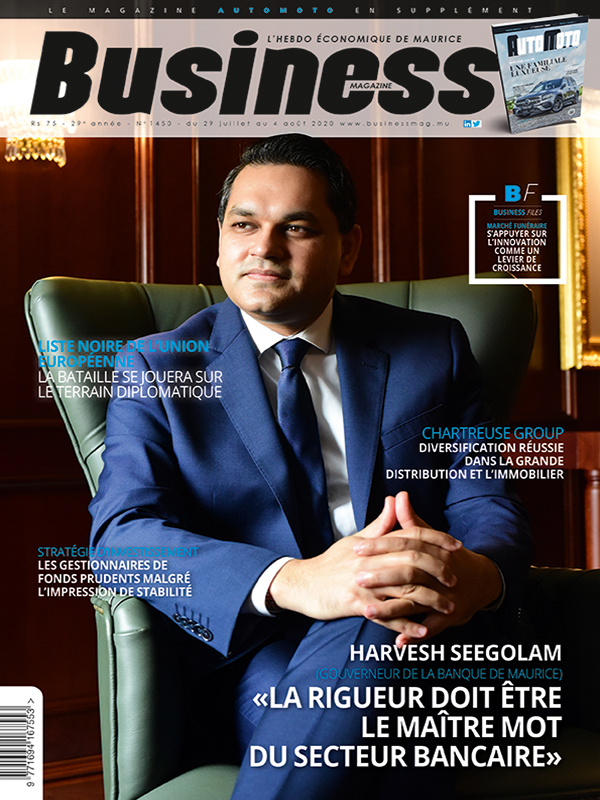 Il a pris ses fonctions à la tête de la Banque de Maurice à l’aube de la plus grave récession que le monde a connue depuis la Grande Dépression. Loin de se laisser ébranler par la situation, Harvesh Seegolam entend accélérer la transformation du secteur bancaire tout en exerçant une surveillance rigoureuse afin de préserver la stabilité du système financier. Se disant un Gouverneur tourné vers l’avenir, il est convaincu que notre futur sera bâti sur l’innovation. C’est ce qui fait la couverture de Business Magazine ce mercredi 29 juillet 2020, un numéro accompagné du supplément Automoto. À retrouver aux points de vente habituels et sur https://kiosk.lasentinelle.mu/presse/business-mag/