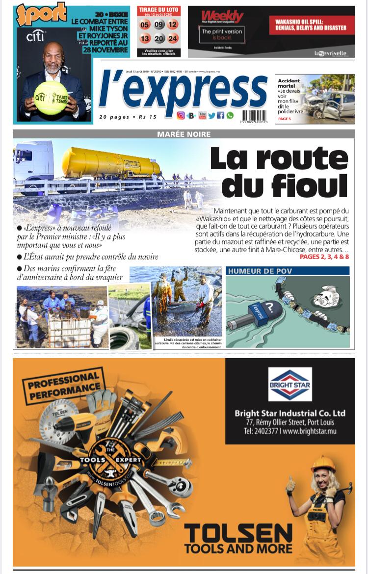 Les grands titres de l'express de ce jeudi 13 août 2020
