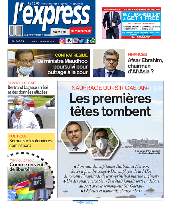 Votre journal deux en un de 80 pages en vente tout le week-end est en kiosque. Au coeur de l'actualité: «Naufrage du «Sir Gaëtan»: les premières têtes tombent» , Autre titre ; «Affaire St-Louis: Bertrand Lagesse arrêté et des données effacées».