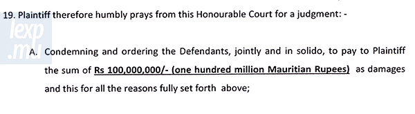 Le 31 juillet 2020, cette fois-ci, par l’intermédiaire de l’avouée Sharmila Sonah-Ori, le Premier ministre avait dirigé une plainte en réclamation de Rs 25 millions contre Nad Sivaramen, directeur des publications ; La Sentinelle, propriétaire-imprimeur de l’express ; Anenden Camatchee, Senior Digital Coordinator ; et Impress Print Co Ltd.