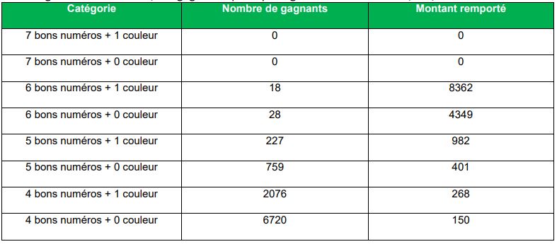 Aucun joueur n’a trouvé la combinaison gagnante pour ce 6e tirage de la Loterie Vert.