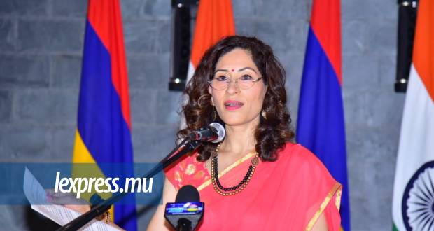 La cheffe de la mission diplomatique indienne et Atish Boyjonauth, le président de l'Employees Welfare Fund