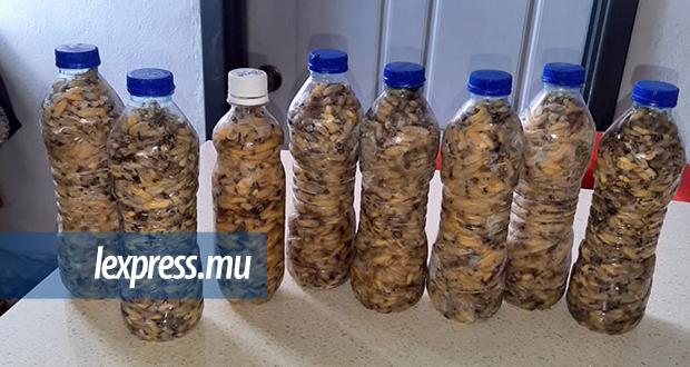 Après avoir récupéré les ruches, Didier enlève les larves et les pèse. Certains clients viennent les récupérer aussitôt. Les autres attendront au frigo, «parey koumma poule k laviann» pour conserver leur fraîcheur. Les larves sont reparties, au kilo, dans des bouteilles ou encore dans des barquettes. Combien ce petit commerce rapporte-t-il à Didier? Nous n’en saurons pas plus. Et comment les consomme-t-on ? «Ou rousi li ek zognon pima» ou nature. «Enn ti gajak ki al bien ek enn ti drink…»