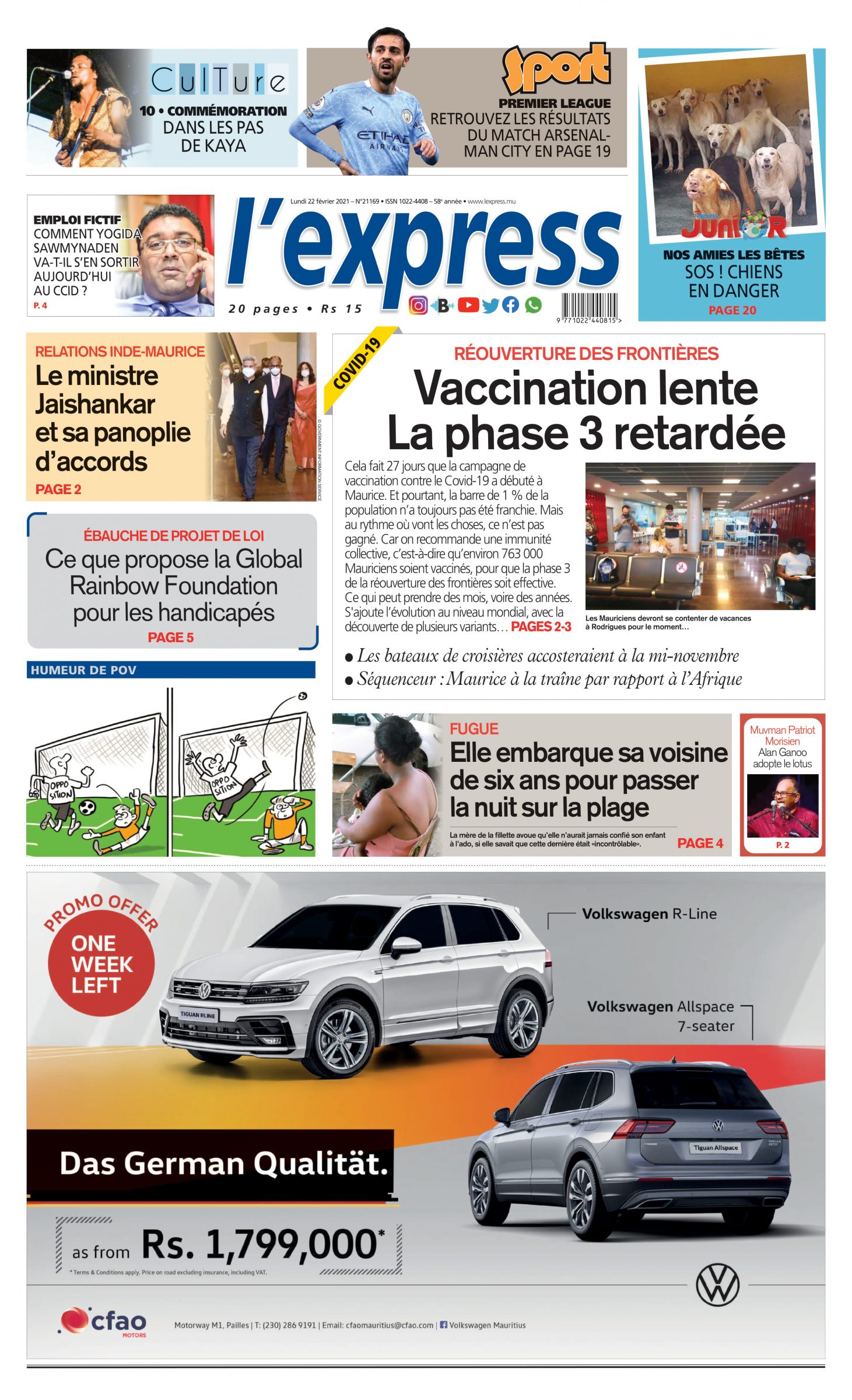 Les grands titres de l'express de ce lundi 22 février 2021