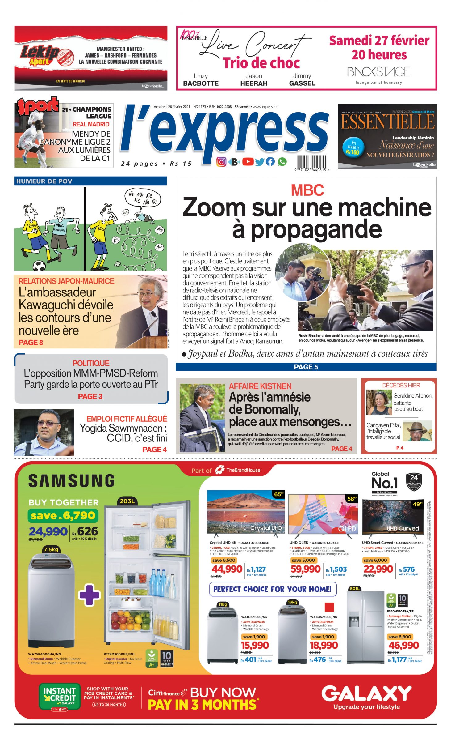 Les grands titres de l'express de ce vendredi 26 février 2021