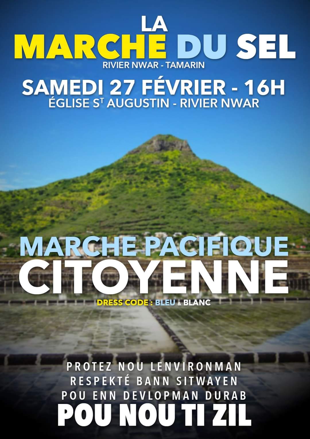 Des habitants de Tamarin et de Rivière-Noire se mobilisent ce samedi 27 février. Rendez-vous est donné à 16 heures à proximité de l'église St Augustin à Rivière-Noire où sera donné le coup d'envoi de «La Marche du sel», une démonstration pacifique citoyenne pour un développement durable de l’île.