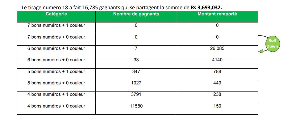 Puisqu’aucun joueur n’a trouvé la combinaison gagnante pour ce 18e tirage de la Loterie Vert, le roll over s’appliquant, le gros lot du vendredi 12 mars 2021 passe donc à approximativement Rs 50 millions.
