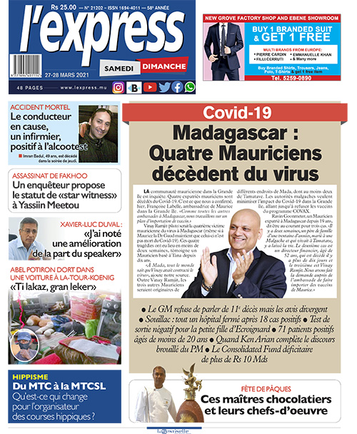 La communauté mauricienne dans la Grande île est inquiète. Quatre expatriés mauriciens sont décédés du Covid-19. C’est ce que nous a confirmé, hier, Françoise Labelle, ambassadrice de Maurice dans la Grande île. «Comme toutes les autres ambassades à Madagascar, nous travaillons sur un plan d’importation de vaccin.»