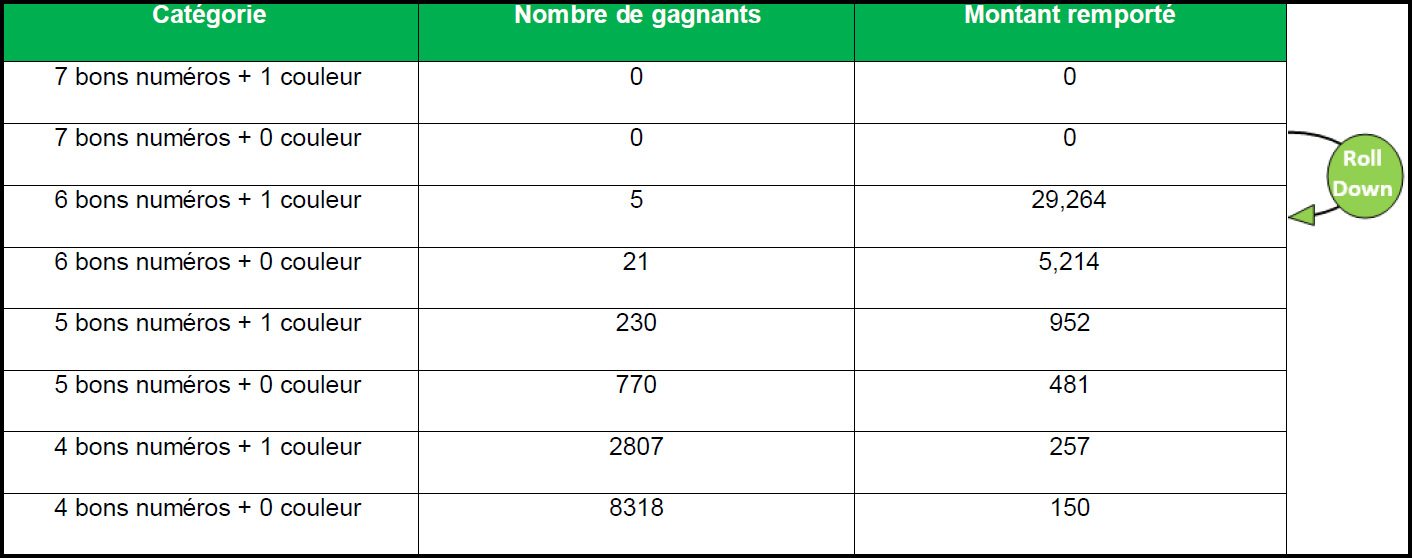 Puisqu’aucun joueur n’a trouvé la combinaison gagnante pour ce 20e tirage de la Loterie Vert, le roll over s’appliquant, le gros lot du vendredi 23 avril 2021 passe donc à approximativement Rs 54 millions.