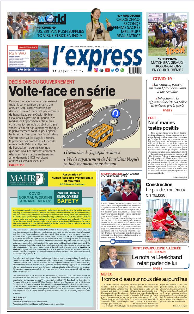 Les grands titres de l'express de ce mardi 27 avril 2021