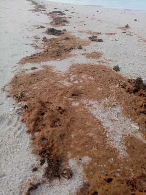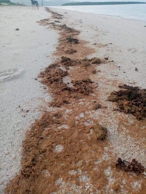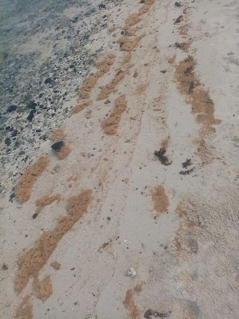 Post-Wakashio: algues visqueuses et poissons morts sur la plage de Pointe-d’Esny