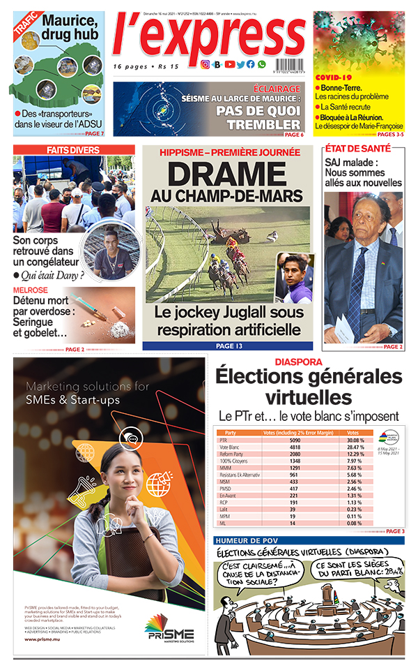 Drame au Champ de Mars : Nooresh Juglall est décédé. A l’heure où nous mettions sous presse hier, le jockey luttait encore pour sa survie, sous respiration artificielle. Il a poussé son dernier souffle alors que le journal était déjà imprimé. Vous retrouverez cependant le récit des événements tragiques dans l’express de ce dimanche.