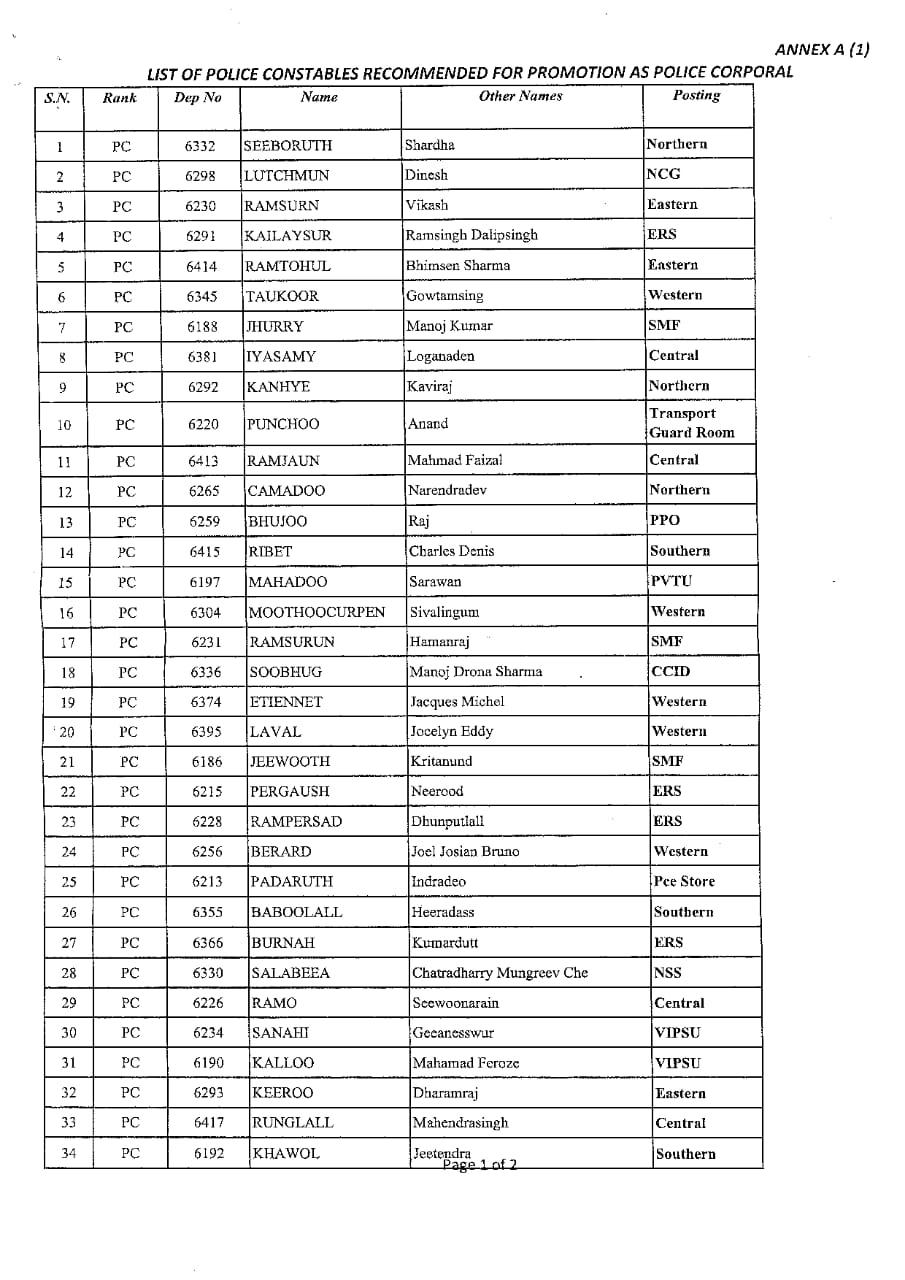 Ils ont 31 ans de service à leur actif. Ces 67 policiers ont été convoqués au quartier-général de la police, aux Casernes Centrales, ce vendredi 21 mai, pour recevoir leur lettre de promotion des mains du commissaire de police, Khemraj Servansing.