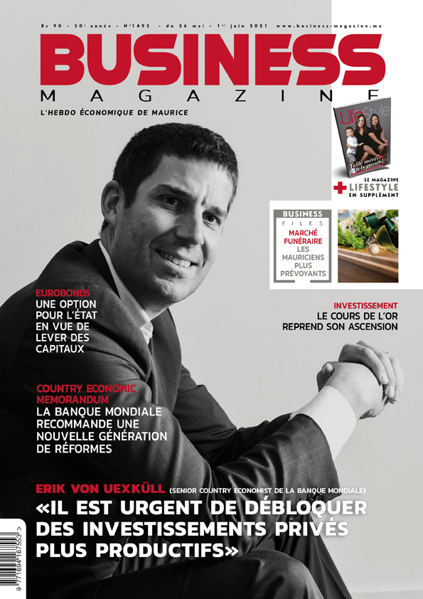 Dans son Country Economic Memorandum rendu public ce mercredi, la Banque mondiale fait une série de recommandations pour corriger les problèmes structurels auxquels l’économie mauricienne fait face et qui sont antérieurs à la pandémie. Dans un entretien exclusif à Business Magazine, le Senior Country Economist et Country Representative de la Banque mondiale pour Maurice et les Seychelles, Erik von Uexküll, donne la recette pour sortir de la crise actuelle : il faut combiner la relance à court terme avec des réformes structurelles ayant pour objectifs de débloquer les investissements du secteur privé, de restaurer la compétitivité et de favoriser l’inclusion. C’est la une de Business Magazine, ce mercredi 26 mai, un numéro accompagné du mensuel Lifestyle, disponible aux points de vente habituels et à consulter en version numérique dans l'espace Kiosk de business-magazine.mu : https://www.business-magazine.mu/
