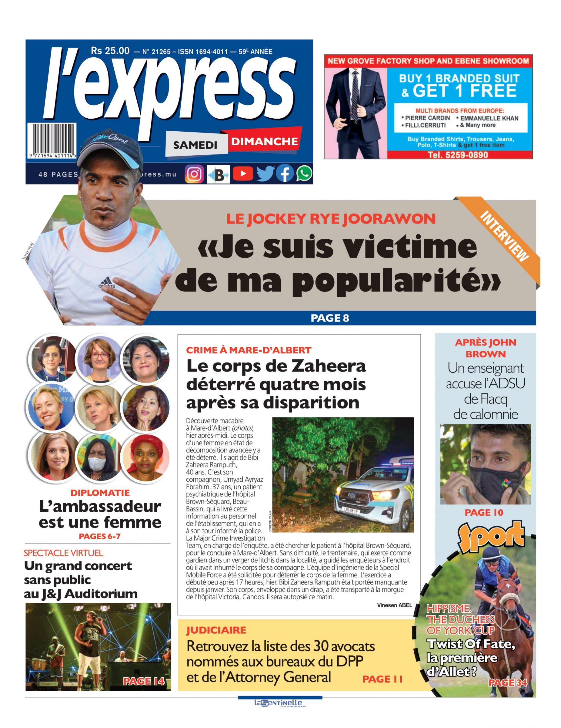 En Une de l'express:Le corps de Zaheera déterré quatre mois après sa disparition; Autre titre:«Je suis victime de ma popularité»