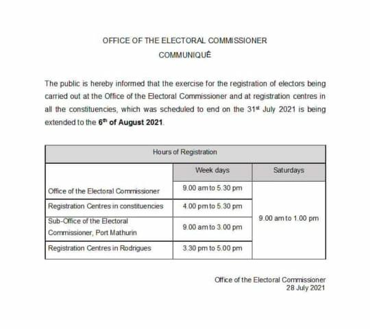 [Communiqué] Extension de l'exercice d'enregistrement des électeurs au 6 août