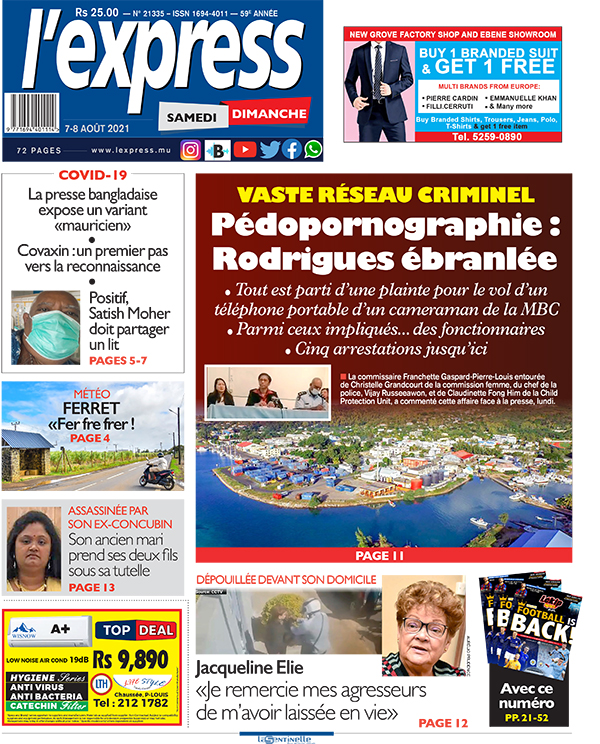 Votre journal deux en un de 72 pages en vente tout le week-end est en kiosque. Au coeur de l'actualité: Pédopornographie: Rodrigues ébranlée.  Autre titre ; Coronavirus: un variant «mauricien» circule-t-il ?