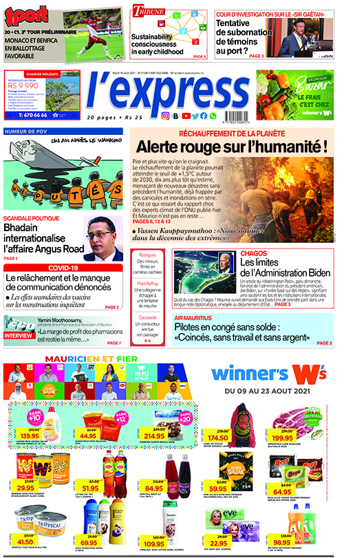 En une de l'express : Réchauffement de la planète : Alerte rouge sur l’humanité ! Autre titre; Chagos : Les limites de l’Administration Biden.