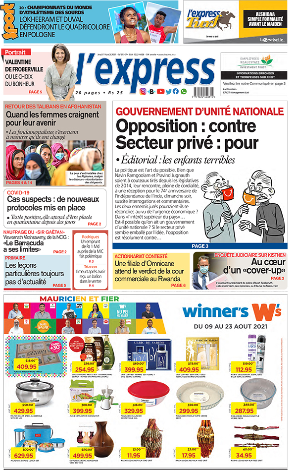 Les grands titres de l'express de ce jeudi 19 août 2021