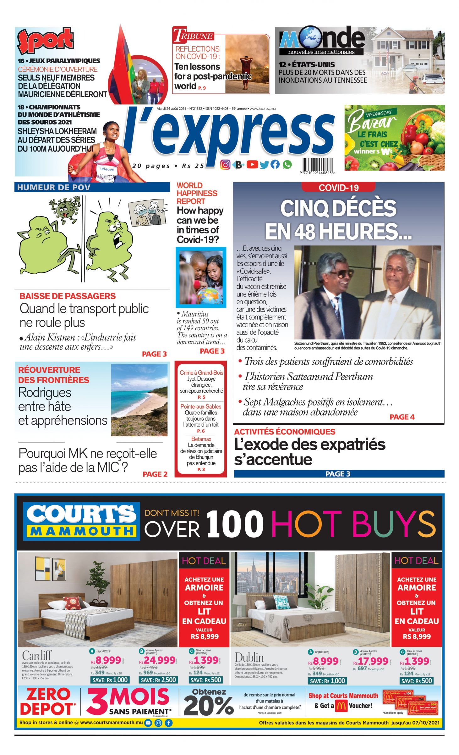 En Une de l'express: Cinq décès en 48 heures...Autre titre: Quand le transport public ne roule plus.
