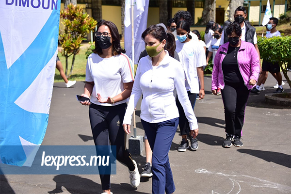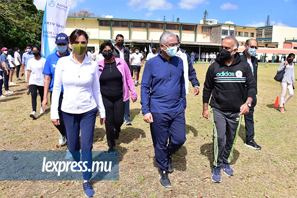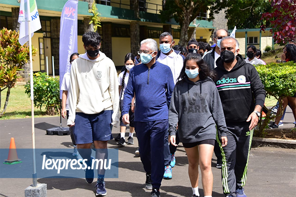 C’est en baskets et tenue de sport que Pravind Jugnauth et son épouse, Kobita, sont arrivés au Queen Elizabeth College (QEC) pour commémorer la journée mondiale de la marche, hier, mardi 28 septembre. Ils ont été accueillis par les majorettes de l’établissement en une haie d’honneur. Le couple était accompagné de la ministre de l’Éducation, Leela Devi Dookun-Luchoomun, et Sarah Rawat-Currimjee, présidente du Mauritius Sports Council. Tous ont ensuite effectué des tours de terrain pour couronner cette journée.