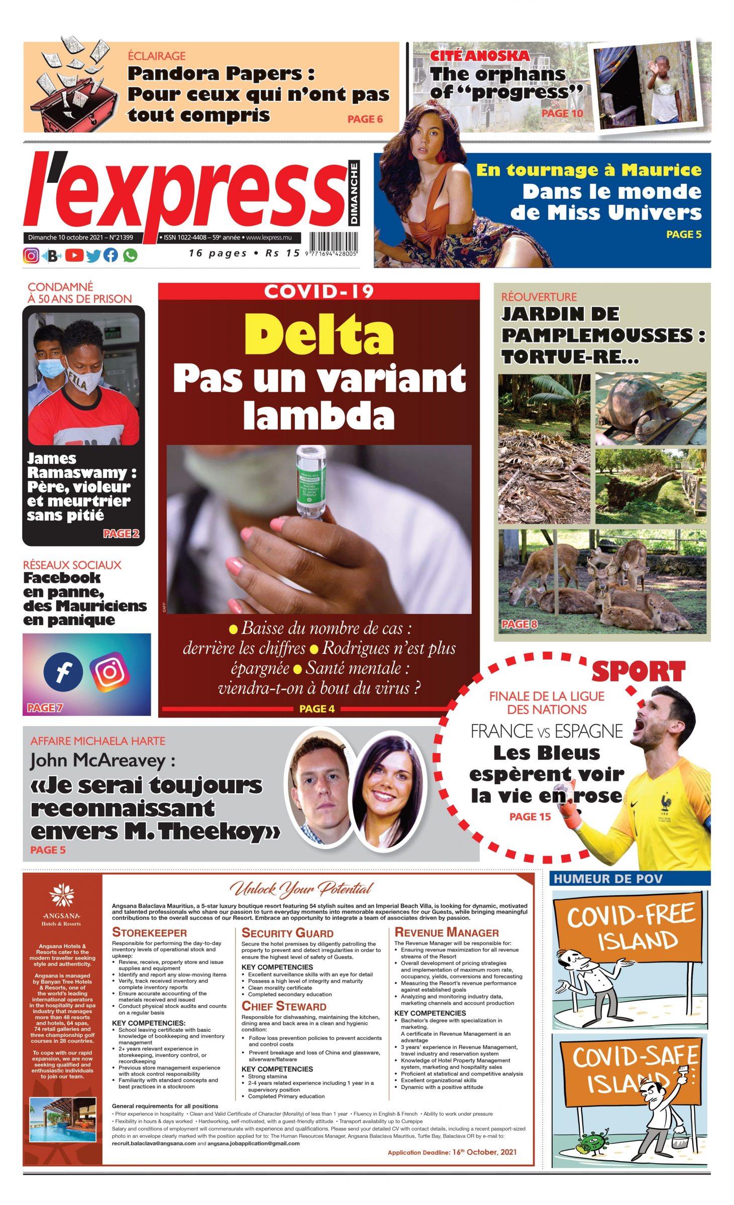 En Une de l'express: Delta Pas un variant lambda;Autre titre;Jardin de pamplemousses : tortue-re…
