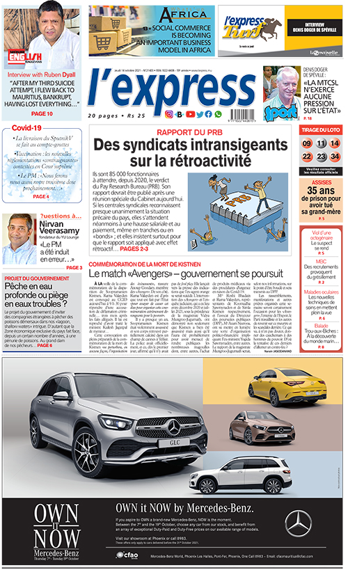 En une de l'express: Rapport du PRB : Des syndicats intransigeants sur la rétroactivité ; Autre titre: Projet du gouvernement : Pêche en eau profonde ou piège en eaux troubles ?