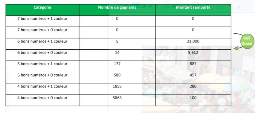 Puisqu’aucun joueur n’a trouvé la combinaison gagnante pour ce 46 e tirage de la Loterie Vert, le roll over s’appliquant, le gros lot du vendredi 22 octobre 2021 passe donc à approximativement Rs 12,5 millions.La combinaison gagnante de ce tirage du 15 octobre 2021 est :