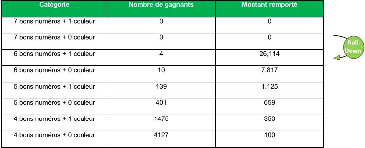 Puisqu’aucun joueur n’a trouvé la combinaison gagnante pour ce 47e tirage de la Loterie Vert, le roll over s’appliquant, le gros lot du vendredi 29 octobre 2021 passe donc à approximativement Rs 13 millions.