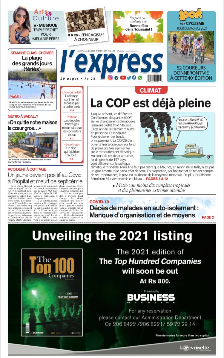 Les grands titres de l'express de ce lundi 1er novembre 2021