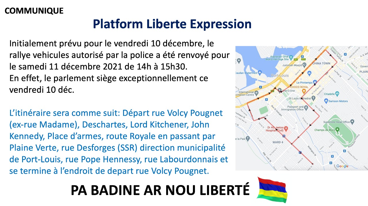Le Parlement siégeant le vendredi 10 décembre, le rallye de véhicules organisé pour ce jour a été repoussé au samedi 11 décembre.