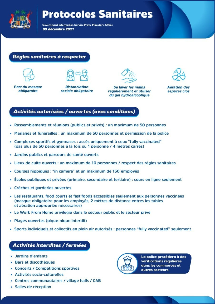Les mesures sanitaires annoncées le 13 novembre dernier s’étendent jusqu’au 15 janvier au moins. Annonce du Premier ministre (PM), Pravind Jugnauth, en début de l’émission «Focus spéciale» de la MBC, ce jeudi 9 décembre. Le chef du gouvernement a également demandé au public de respecter à la lettre les règles sanitaires, surtout en cette période de fêtes. Par ailleurs, il a annoncé que les subsides sur les produits essentiels seront étendus jusqu’à juin 2022.