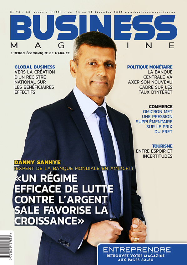 Au début des années 2000, il faisait partie de l’équipe fondatrice de la Financial Intelligence Unit dont il a été le directeur général adjoint. Par la suite, il a rejoint la Banque mondiale en tant qu’expert en matière de blanchiment d’argent et de financement du terrorisme. Aujourd’hui, Danny Sanhye est l’expert principal de la Banque mondiale sur les questions de cryptomonnaie et d’évaluation des risques nationaux. Récemment, son expertise a été sollicitée pour aider Maurice à développer un modèle d’évaluation du risque sur la cryptomonnaie. Dans un entretien, il évoque la nécessité pour le secteur du global business de se conformer aux réglementations internationales. C’est en couverture de Business Magazine, ce mercredi 15 décembre, un numéro incluant le magazine Entreprendre, disponible aux points de vente habituels et à consulter en version numérique dans l’espace Kiosk de business-magazine.mu : https://www.business-magazine.mu/