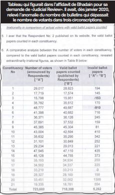 Or ce n’est pas l’unique cas. Dès le 15 janvier 2020, Roshi Bhadain avait démontré que les circonscriptions 3, 5 et 18 (Port-Louis Maritime / Port-Louis Est, Pamplemousses / Triolet et Rivière-des-Anguilles / Souillac) avaient validé plus de votes que le nombre de votants par trois fois. Pour arriver à cette conclusion, le leader du Reform Party avait totalisé le nombre de voix obtenues par chaque candidat. Chiffre qu’il a divisé par 3 (puisque chaque votant désigne trois candidats). Il a ensuite comparé le résultat obtenu au nombre de votants officiellement déclarés par la commission électorale le jour du scrutin.