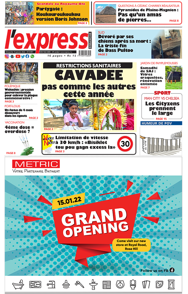 En une de l'express: Restrictions sanitaires: Cavadee pas comme les autres cette année ; Autre titre: Port-Louis: un foeoetus de 4 mois découvert dans les égouts