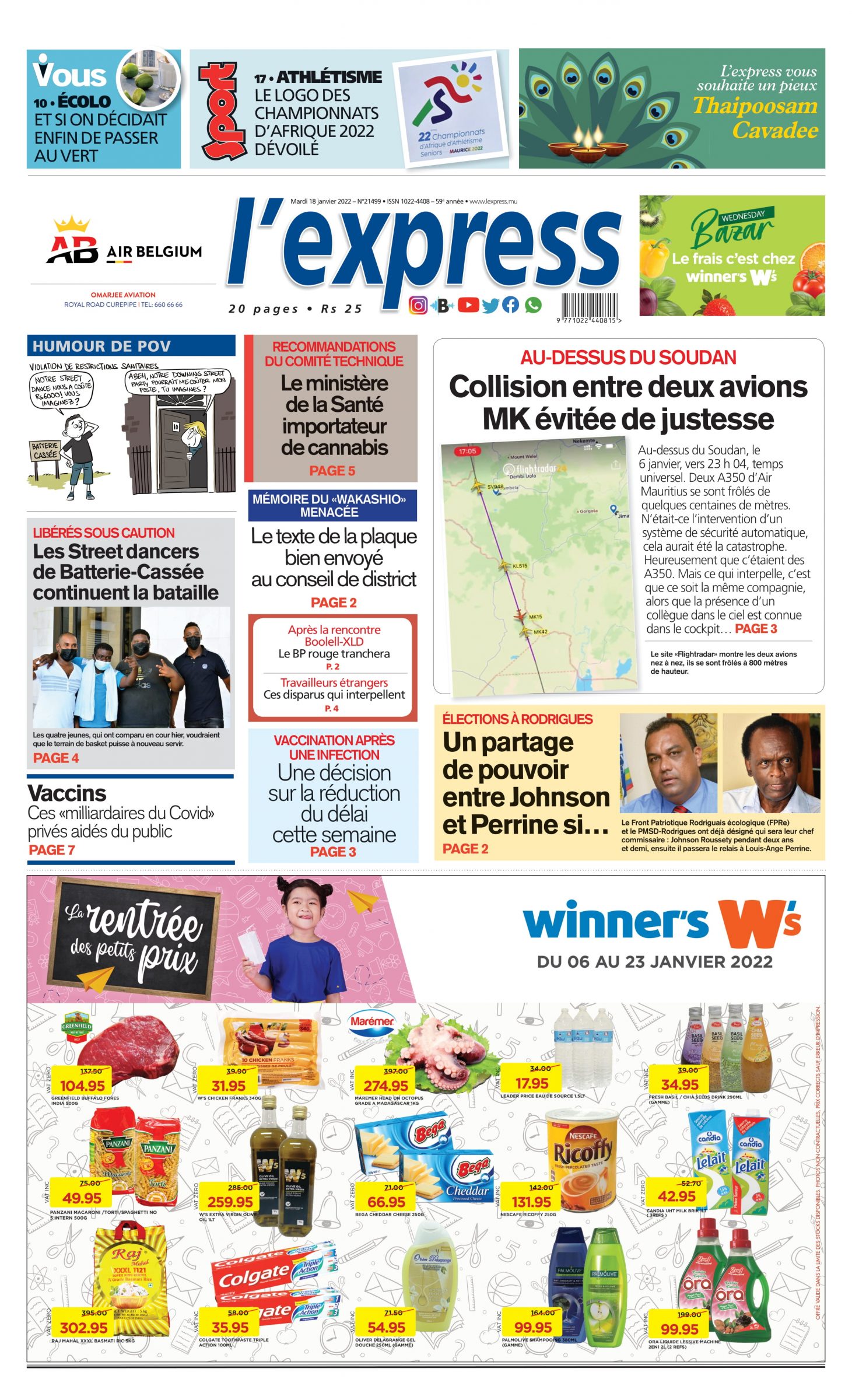Les grands titres de l'express de ce mardi 18 janvier 2022