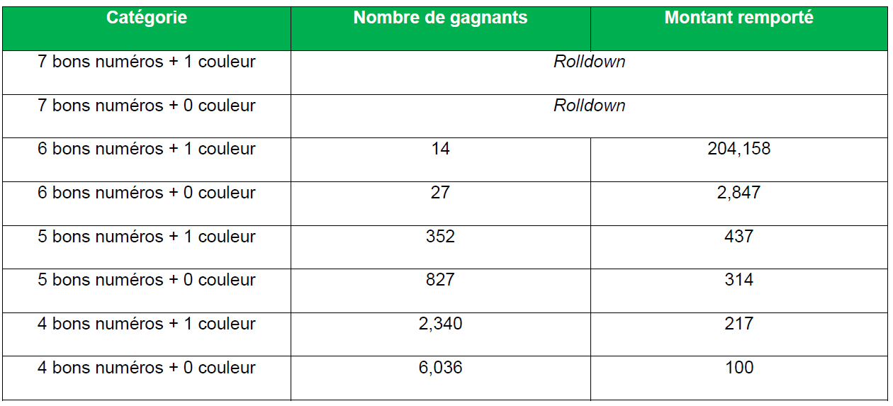 La combinaison gagnante de ce tirage du 25 février 2022 est : 04-07-13-14-19-22-27 et la couleur jaune