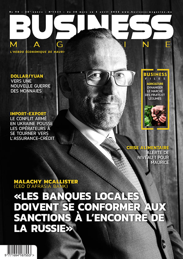 Malachy McAllister a eu un riche parcours international. Avant de prendre ses fonctions en tant que CEO d’AfrAsia Bank en décembre dernier, il a travaillé pendant cinq ans et demi à Moscou. Ce banquier chevronné met en garde les banques mauriciennes sur la nécessité d’être extrêmement attentives et de se conformer pleinement à toutes les nouvelles sanctions à l’encontre de la Russie. Il évoque, par ailleurs, la fantastique fenêtre d’opportunités qui s’ouvre pour le secteur financier bancaire et non bancaire suivant la sortie de Maurice de la liste noire de l’Union européenne et l’inclusion de juridictions concurrentes comme Dubaï sur la liste grise du Groupe d’action financière. C’est en couverture de Business Magazine ce mercredi 30 mars 2022, un numéro à retrouver aux points de vente habituels et à consulter en version numérique dans l’espace Kiosk de business-magazine.mu : https://www.business-magazine.mu/