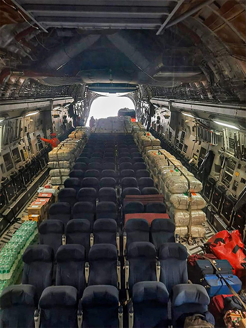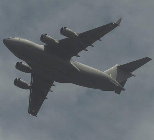 Un de ces avions de l'Indian Air Force transportant du matériel de secours.