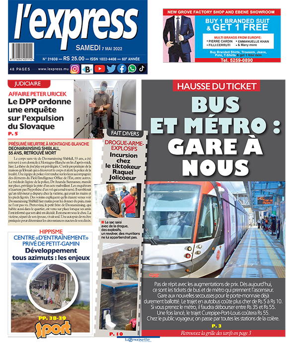 Pas de répit avec les augmentations de prix. Dès aujourd’hui, ce sont les tickets de bus et de métro qui prennent l’ascenseur. Gare aux nouvelles secousses pour le porte-monnaie déjà durement ballotté. Le trajet en autobus coûte plus cher de Rs 5 à Rs 10. Si vous prenez le métro, il faudra débourser entre Rs 35 et Rs 55. Une fois lancé, le trajet Curepipe-Port-Louis coûtera Rs 55. Chez le public voyageur, on passe par toutes les stations de la colère.