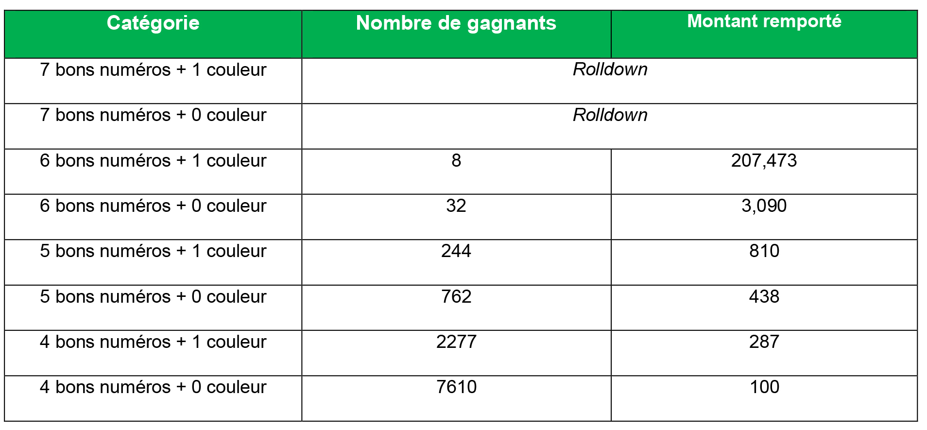 8 joueurs remportent le jackpot pour ce 78e tirage de la Loterie Vert en cochant que 6 bons numéros et la bonne couleur. Ainsi ils empochent Rs 207,473 chacun.