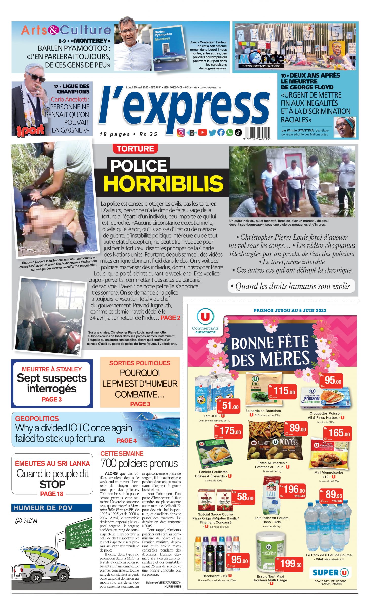 La police est censée protéger les civils, pas les torturer. D’ailleurs, personne n'a le droit de faire usage de la torture à l'égard d'un individu, peu importe ce qui lui est reproché. «Aucune circonstance exceptionnelle, quelle qu’elle soit, qu’il s’agisse d’État ou de menace de guerre, d’instabilité politique intérieure ou de tout autre état d’exception, ne peut être invoquée pour justifier la torture», disent les principes de la Charte des Nations unies. Pourtant, depuis samedi, des vidéos mises en ligne donnent froid dans le dos. On y voit des policiers martyriser des individus, dont Christopher Pierre Louis, qui a porté plainte durant le week-end. Des «polico crapo» pervertis, commettant des actes de barbarie, de sadisme. L’avenir de notre petite île s’annonce très sombre. On se demande si la police a toujours le «soutien total» du chef du gouvernement, Pravind Jugnauth, comme ce dernier l’avait déclaré le 24 avril, à son retour de l’Inde…