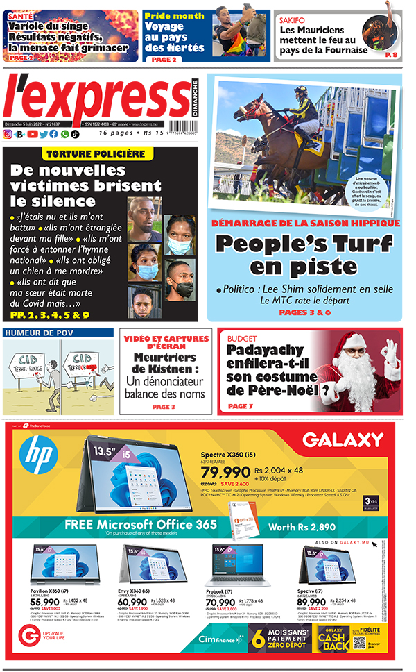 En une de l'express: Torture policière: de nouvelles victimes brisent le silence ; Autre titre: Démarrage de la saison hippique: People’s Turf en piste