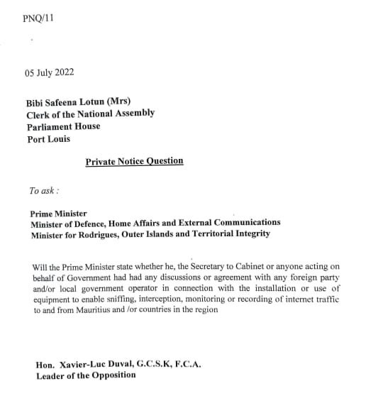 Xavier-Luc Duval interrogera Pravind Jugnauth au sujet des allégations graves faites par Sherry Singh sur l’espionnage d’Internet.